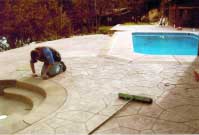 Description: Site preparation, form and set-up patios, build steps, set up and pour colored concrete, stamp and finish. Seal stamped patios.